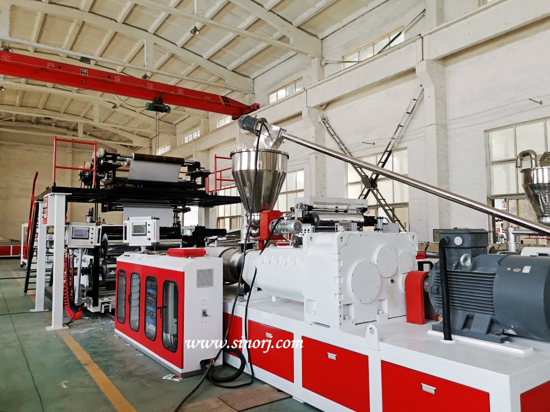 解決了原有PVC地板用密煉機(jī),開煉機(jī),四輥壓延,回火,熱壓貼膜的復(fù)雜加工工藝;占地面積大,用人多,生產(chǎn)成本高,耗能大,設(shè)備購買費(fèi)用高的難題。